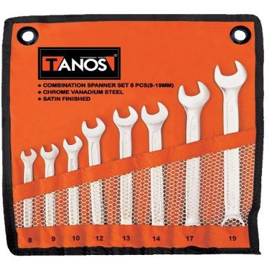 مجموعه 8 عددی آچار یکسر رینگ یکسر تخت تانوس در سایز های 8،9،10،12،13،14،17،19 میلیمتری وجود دارد که از فولاد کروم وانادیوم ساخته شده و دارای استاندارد DIN اروپا میباشد. همچنین کیف آن از جنس برزنت میباشد.