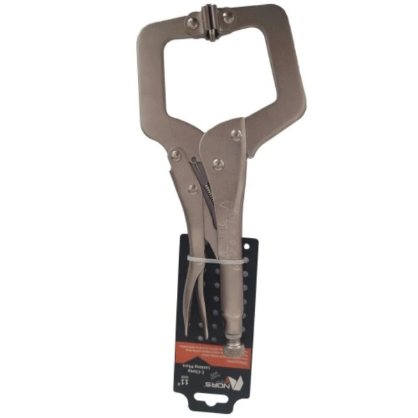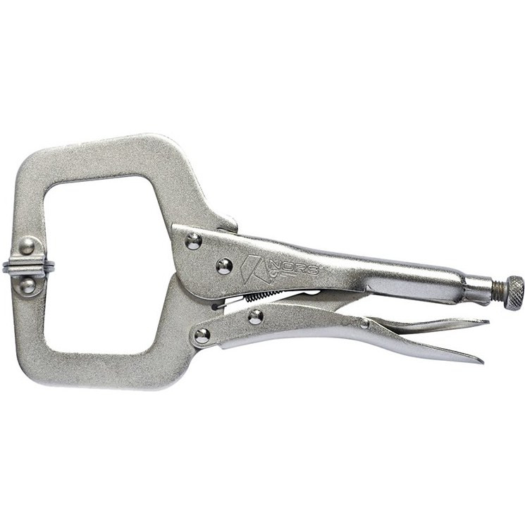 انبرقفلی گیره ای (هماهنگ شونده) NORS یکی از حرفهایترین و با دوامترین انبر قفلیهای موجود در بازار است. این مدل انبر قفلی همانند انبر قفلی C شکل بوده و تنها نقطه تمایز آن، داشتن صفحات متحرک در نوک فکها است تا بتواند خود را با سطوح قطعات، منطبق نموده و بدون هیچ گونه اثرگذاری برروی آنها قفل شود (بواسطه شکل هندسی فکها ، میتواند بر روی نقاط فاصله دارلبه قطعات قرار گرفته و قفل شود).این انبرقفلی دارای فک قدرتمند با استحکام بالا ،مقاوم و از جنس کروم وانادیوم Chrome Vanadium است. بدنه این انبراز جنس فولاد کروم مولیبدنیوم Cr-Mo بوده که ازمقاومت بالایی دربرابرزنگ زدگی برخوردار است و دارای ضامن مدل آمریکایی آزاد کننده سریع با روکش پی وی سی است تا به راحتی بتوان با این ضامن ، انبررا از حالت قفل خارج نمود. این امرموجب میشود تا در استفاده طولانی مدت دست کاربر خسته نشود. این انبر قفلی از مکانیزم قفل مناسب جهت اعمال فشارهای بالا برای گرفتن قطعات برخوردار است. دسته این انبر از ورق ضخیم با روکش نیکل ساخته شده است. شرکت NORS ازجملهی عرضه کنندگان مطرح داخلی درزمینه ی انواع ابزارهای دستی، بادی و برقی است. این شرکت با معرفی محصولاتی که ازنظر کیفیت در سطح بالایی قرار دارند و تهیهی آنها ازلحاظ قیمت مقرون به صرفه هستند، جایگاه مناسبی در بازار ایران برای خود ایجاد کرده است
