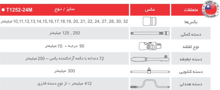 اقلام همراه: 24 عددی الیاژ: کروم-وانادیوم